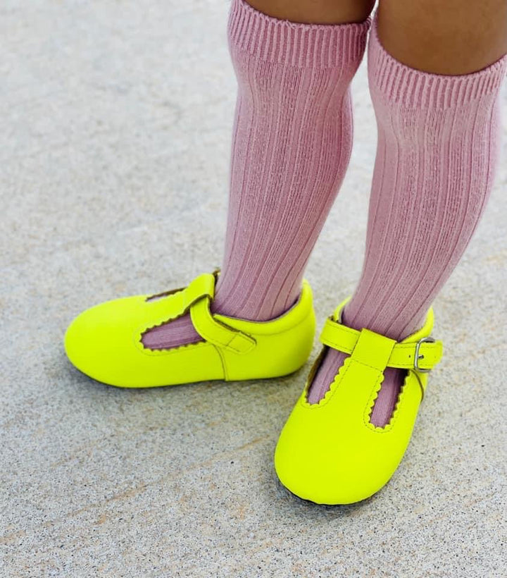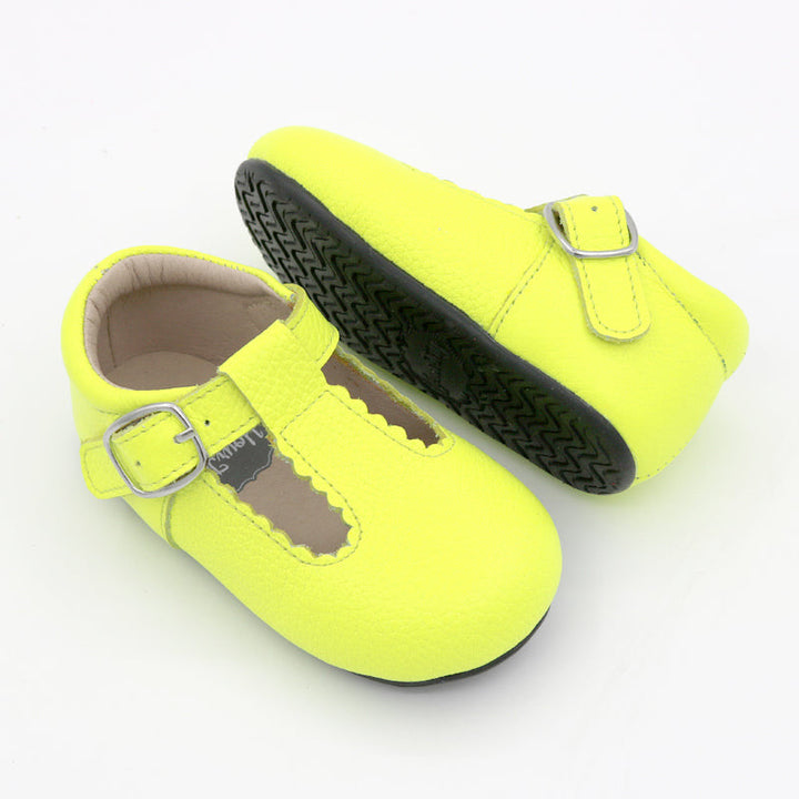 A YourTay favorite, these bold neon yellow t-straps are the perfect way to brighten up any outfit. These leather shoes are accented with bendable soles and flexible fastening to make every step pleasant and full of unbeatable comfort.