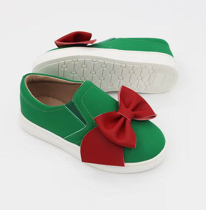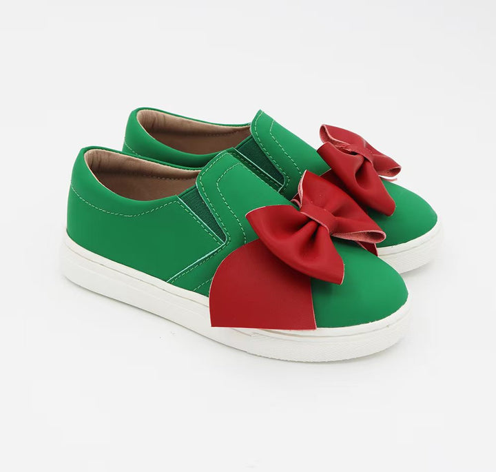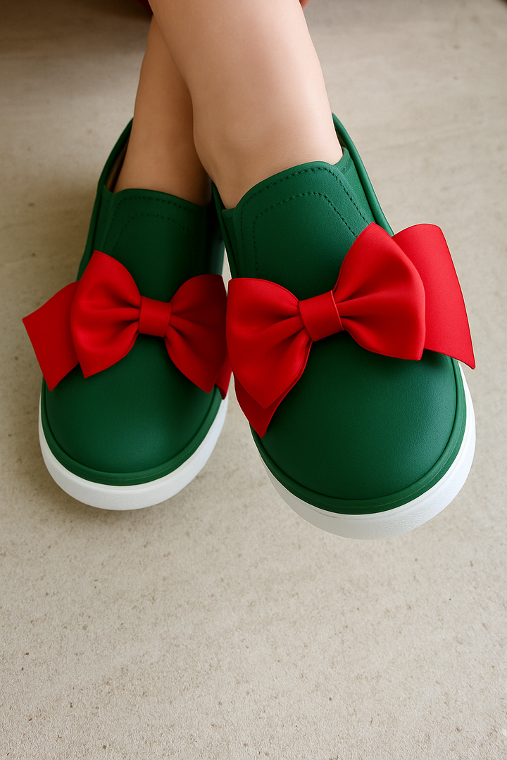 TAYLEE Mistletoe Bow On Toe Sneakers - Green with Red Bow